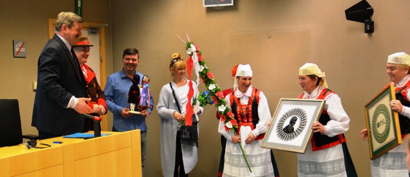 W dowód wdzięczności przekazano Panu Jarosławowi Kalinowskiemu palmę kurpiowską, wycinanki, kwiaty oraz laleczki w strojach kurpiowskich. Oprócz Brukseli